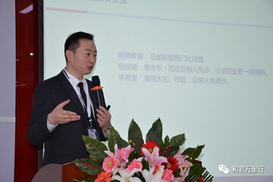 万志良先生目前是和君咨询的高级合伙人,也是整个校长班培训的压轴人物。第二天上午通过联想的组织进化路线图、新东方的组织演变过程以及卓越教育的组织升级之路三部分来系统、完整、全面地阐述了近10年咨询经历对于组织理论与设计实务的相关心得。第二天下午通过对艺朝艺夕、山东某机构组织模式、组织能力的解读引导校长班学员回去设计符合自己公司实情的、有力量的组织模式。万总在分享中的一些观点给大家留下了深刻印象: