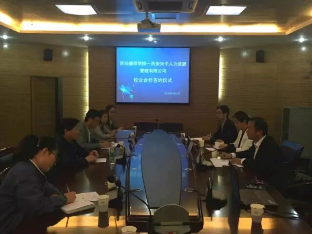 ▲西安翻译学院与西安小康酒业有限公司校企合作仪式