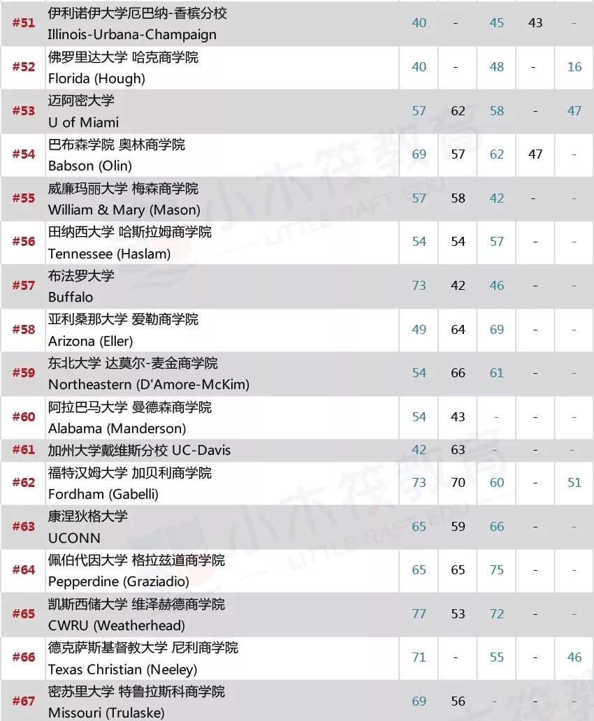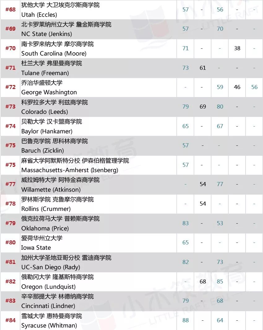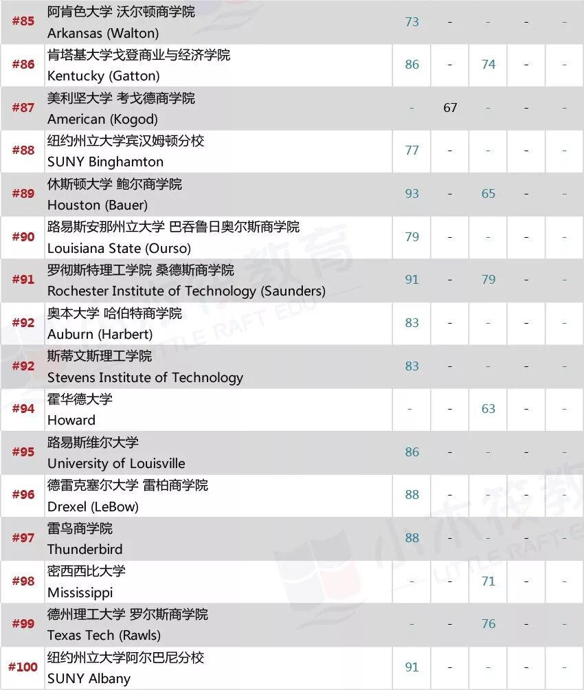 当然,有上升也有下跌,今年名次下跌最多的3个学校分别是:路易斯安那州立大学 巴吞鲁日奥尔斯商学院 Louisiana State (Ourso),该校从去年的第65名下跌了25个位次跌至榜单第90名。