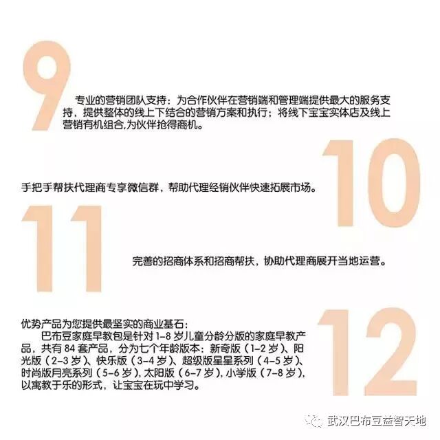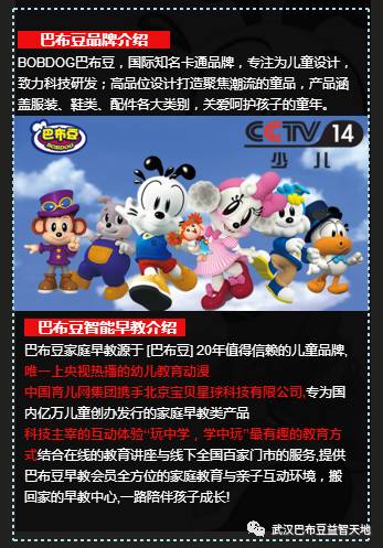 加盟咨询范围:武汉及周边城市未代理巴布豆早教包区域!