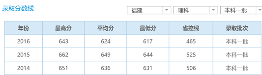 (由上至下分别是2016-2014年的福建省理科本一批录取分数线)