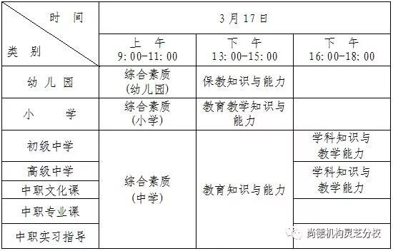 (一)笔试时间:2018年上半年全国中小学教师资格考试笔试(简称“NTCE”)定于3月17日举行。