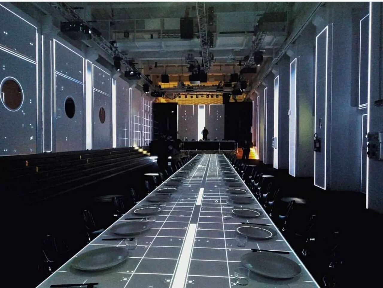 食物除了带来嗅觉与味觉的感受,还应当触发视觉、听觉、触觉的美妙连接。我们运用声光电的技术手段,布置好了一个沉浸式的餐厅,为大家准一场食物T台秀。