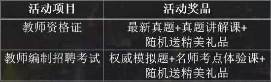 活动礼品二:教师编制招聘:权威模拟题+名师考点体验课+随机送精美礼品