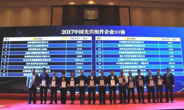 福建天成新能源科技有限公司祝贺无锡尚德荣获“2017全球组件企业10强”称号!!