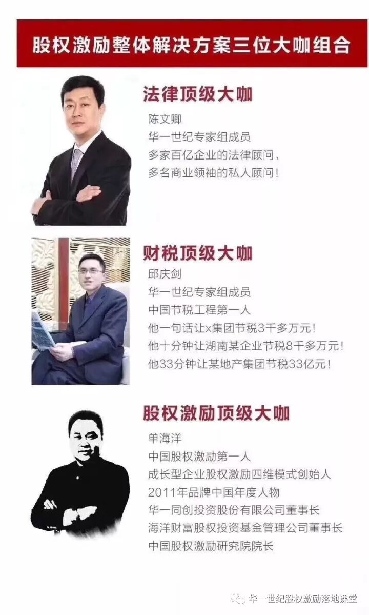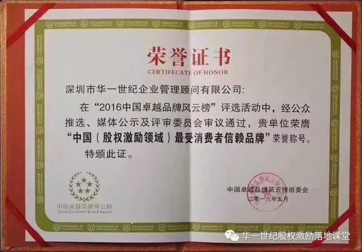 华一世纪成立于2010年3月,总部设在深圳,与中国股权激励研究院、深圳市海洋财富股权投资基金管理有限公司共同隶属于深圳市华一同创投资集团。目前,华一世纪在全国等20多个省、50多个城市分布着我们的战略合作伙伴。旗下员工300余名,服务企业超过3万家。作为国内唯一一家由平均身价达1.82亿的77位股东共同发起的,集商学、教育、投资于一体的综合资源平台,华一世纪是中国股权激励整体解决方案最权威的落地机构。专业、权威、诚信、实力、实效,也已成为企业在引入股权激励机制时首选华一的最重要因素。