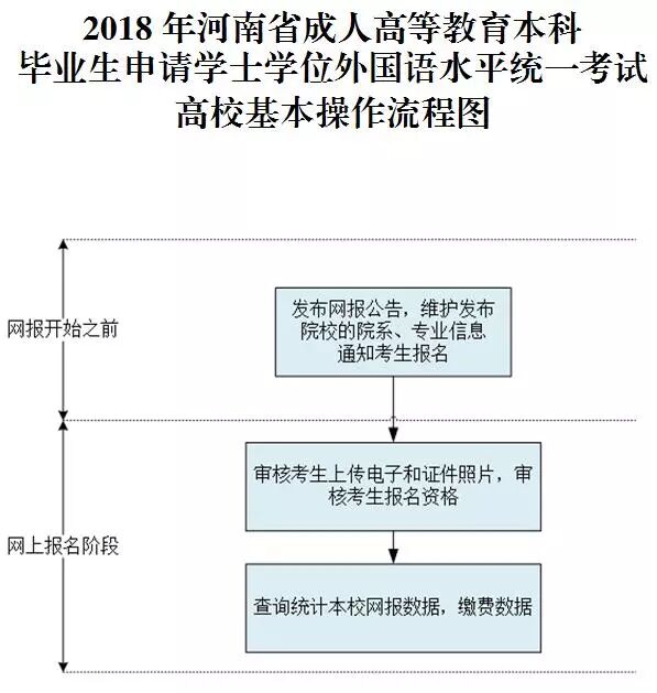现将2018年河南省成人高等教育本科毕业生申请学士学位外国语水平统一考试(以下简称“2018年河南省成人学士学位外语统考”)报名工作的有关事宜通知如下: