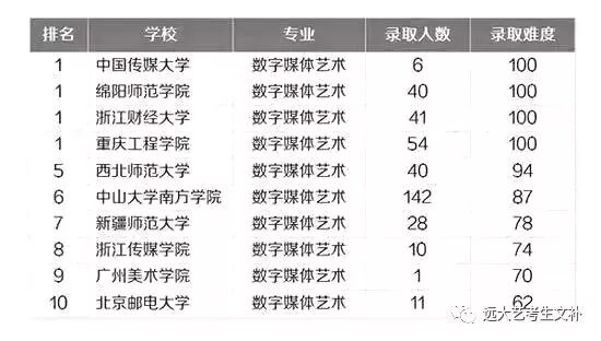 “数字媒体艺术”专业对高考分数要求最高的十所高校