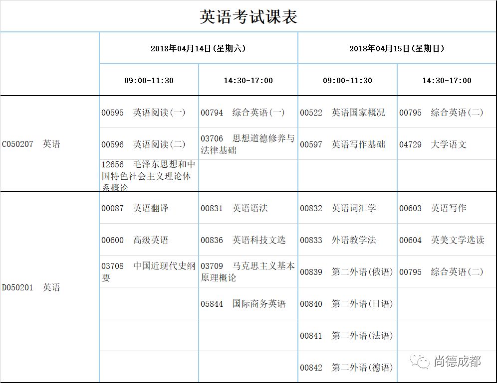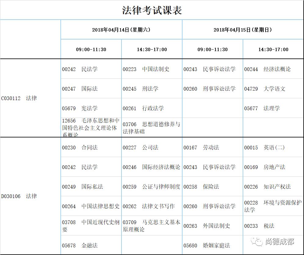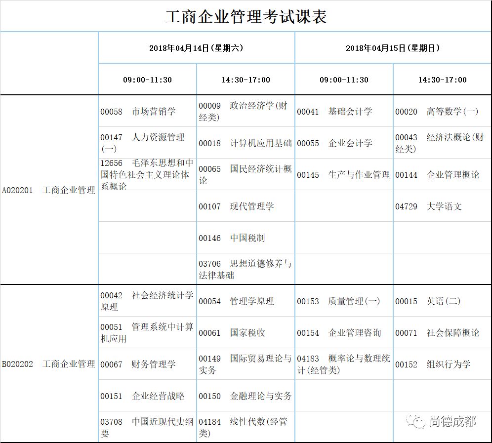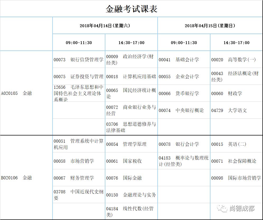 声明:以下为自考办公布的最官方的考试科目,适用于四川省全体学员。全省通用,查阅的学员可根据自己的课表自己搭配考试科目,只要考试时间不冲突即可。