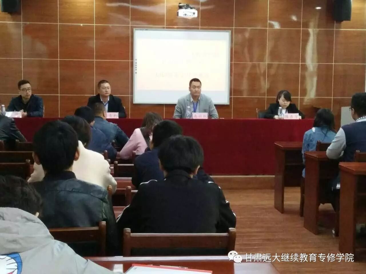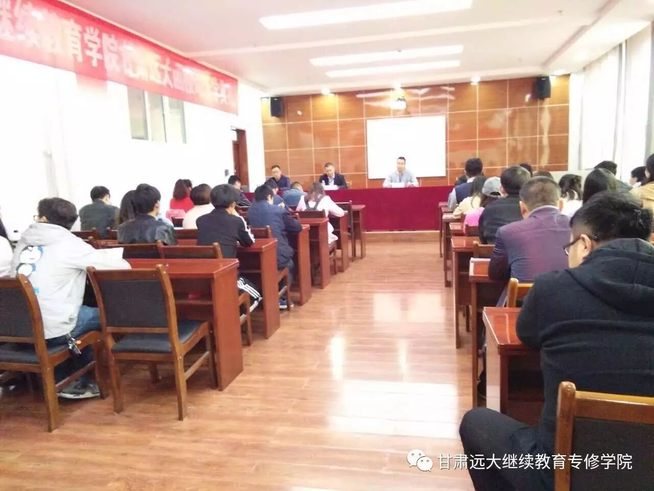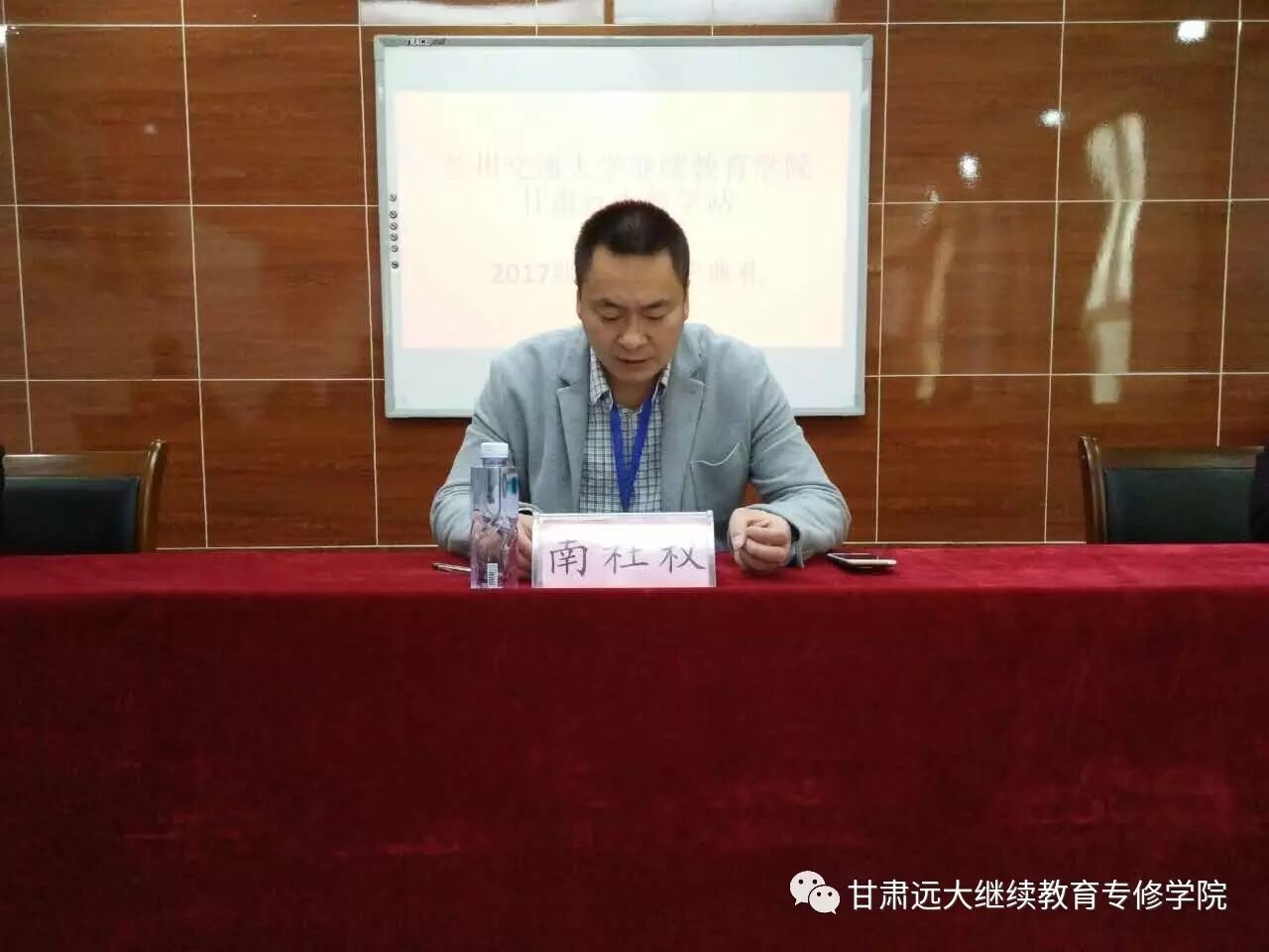 2017年4月15日下午14:00,兰州交通大学继续教育学院甘肃远大教学站2017级新生开学典礼在兰州电子工业学校二楼会议室召开。