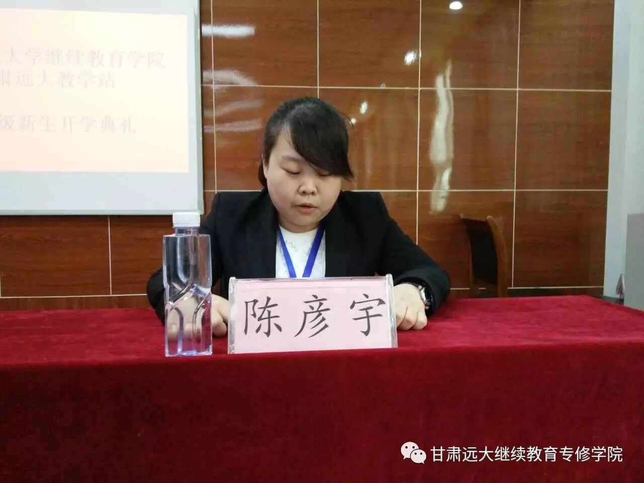 开学典礼由甘肃远大继续教育专修学院办公室主任陈彦宇老师主持。