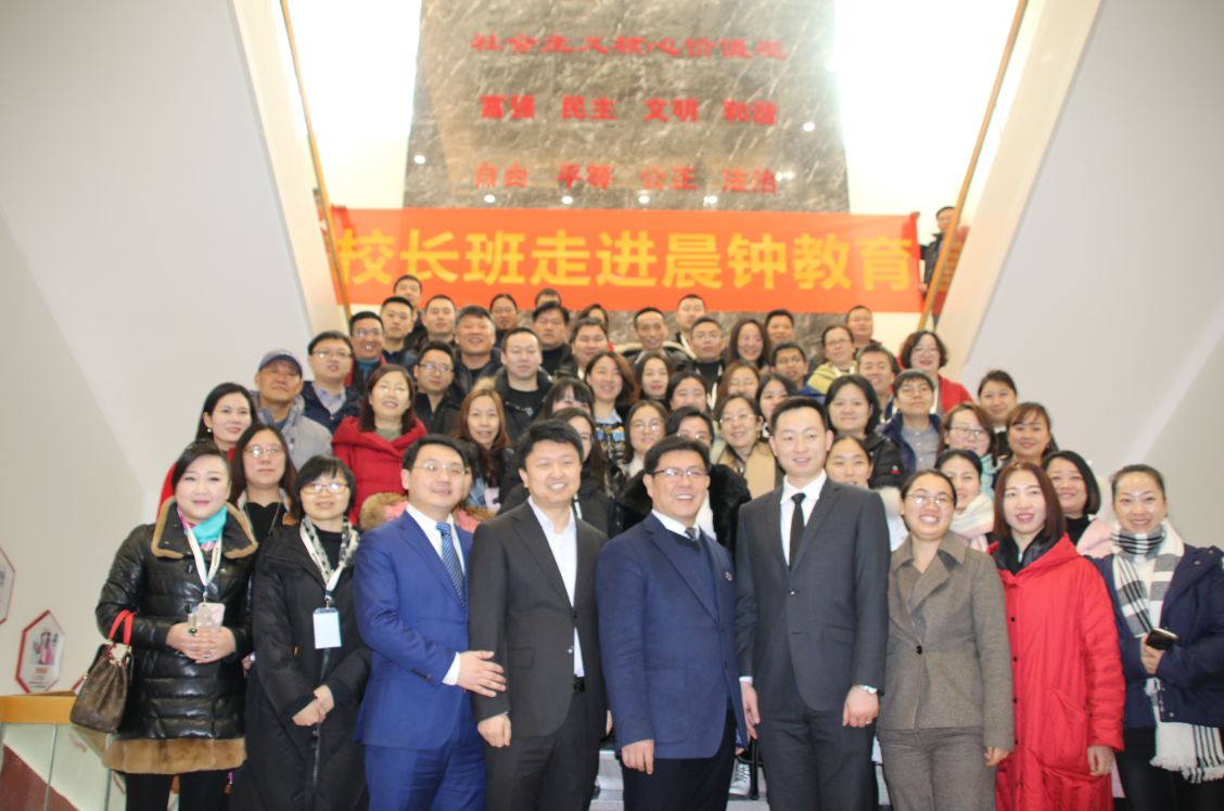 1月9日,第五届和君校长班移师郑州晨钟教育集团总部,开启了为期两天的现场教学活动。当天上午9点,在和君集团高级合伙人、研究中心主任万志良的带领下,该班50余名学员集体参观了晨钟教育集团总部,听取了具有晨钟特色的非公企业党建发展介绍。随后,晨钟教育集团党委副书记、总裁朱玉峰,副总裁陈金龙分别以“晨钟教育发展历程”“晨钟教育组织化之路”为题与学员进行了现场交流。