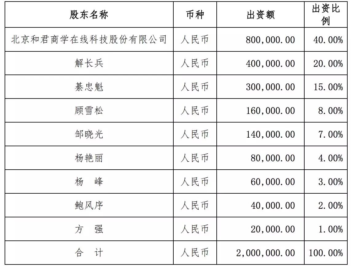 报告称,君为教育的注册资本为200万元,和君商学使用募集资金出资400万元,其中80万元为君为教育注册资本,占君为教育注册资本的40.00%,其余 320万元计入君为教育资本公积。