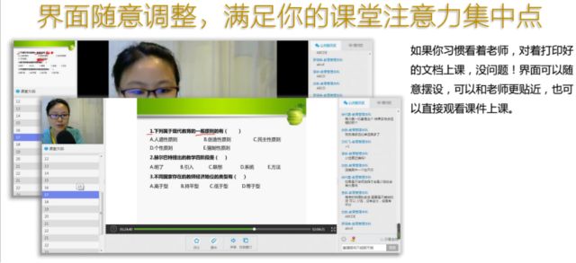 上课界面根据个人喜好调整的,喜欢看着老师,咱们就看着老师,喜欢看板书,咱们就看着板书,完全没有拘束