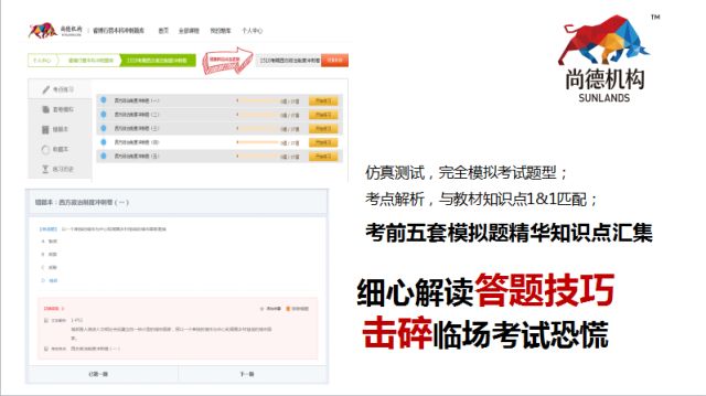 教研团队日复一日整理出来的1比1考题分布的模拟考试,能够通过模拟考试,正式考试的时候,就不怕考不过了。