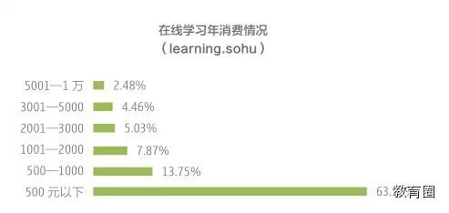 目前来说,在线教育用户付费习惯还在培养 中,虽然市场基础已经存在,但是消费习惯还远远没有形成。2014年搜狐教育消费者调查发现,6成多(63%)的网友每年用于在线学习的花费是500元以 下,而花费1000元以上的网友仅占2成。以目前趋势来看,形成有规模的在线教育消费市场还需时日。