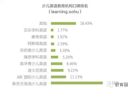 说到口碑,此次调查显示,家长对新东方泡泡少儿英语(38%)、ABC国际少儿英语(11%)、迪士尼英语(9%)等机构评价不错。