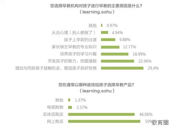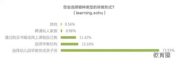 2014搜狐教育消费者调查结果也显示,当前有10%以上的家庭会通过购买书籍或网上课程自己给孩子进行早教启蒙。