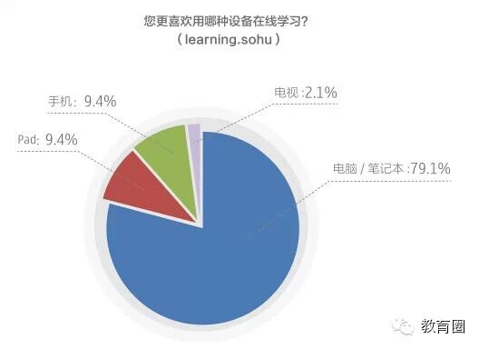 从在线学习的工具来看,用电脑/笔记本的网友依然占据绝大部分(79%),虽然手机和Pad分别不到1成,但近两年各种便捷的学习App的快速发展,都 表明移动互联网将会成为未来在线学习的主要手段之一。在线学习已经满足于PC端,谁能占领更多的移动端市场,谁就能占领未来用户的更多学习时间。