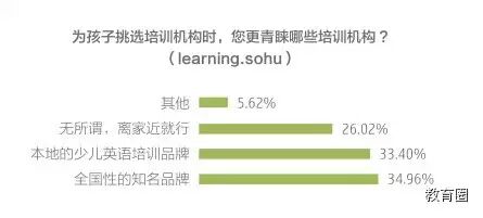 哪些因素会影响家长对少儿英语培训机构的选择?搜狐教育的调查表明,家长更青睐于全国性的知名品牌(35%),33%的家长愿意选择本地的少儿英语培训品牌,2成多(26%)的家长更注重地点的便利性。