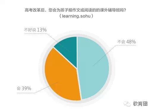 从2014年开始,高考语文试卷着重强调回归传统文化和母语特色,强调对学生精神素养的考察。语文科目调整引起了广泛关注。搜狐教育对此展开调查,结果显示:39%的网友会为孩子报作文或阅读的辅导班,48%的网友则表示不会。