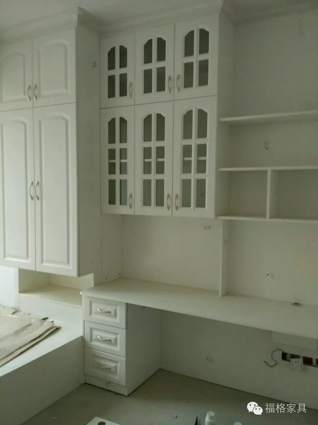 这家装修风格为简约欧式,所有的定制家具都为白色,配欧式吸塑门。书房面积比较小,并且是异形,但经过设计师的巧妙布局,让这个小房间拥有了榻榻米、衣柜、电脑桌和书架,榻榻米可以放下2米长、1.5米宽的床垫。