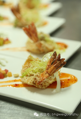 讲座结束后,刘强在学校实训室现场为大家制作了四款特色菜品(国色天香、杏香虾排、刺猬鱼、奇味小番茄),从刀工到烹调,再到菜品的造型、摆盘,每一步都展示出老师的扎实的基本功底和精湛的厨艺。