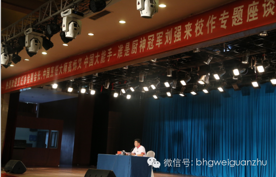 6月12日上午,蓝海职业学校特邀烹饪协会副会长、中国烹饪大师、蓝海职业学校名誉校长高炳义,《中国大能手》——谁是厨神冠军刘强为全校千余名师生举行讲座。集团副总裁、蓝海职业学校校长袁崇泉现场主持讲座,并对两位大师表示热烈欢迎,1300余名师生及部分学生家长认真聆听了讲座。