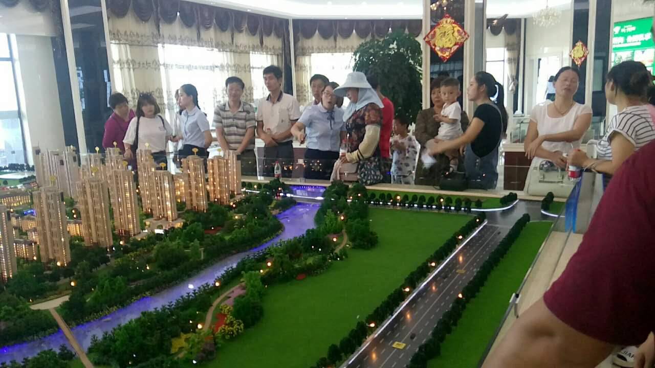 置业顾问在为客户讲解沙盘,为抢房做好准备!