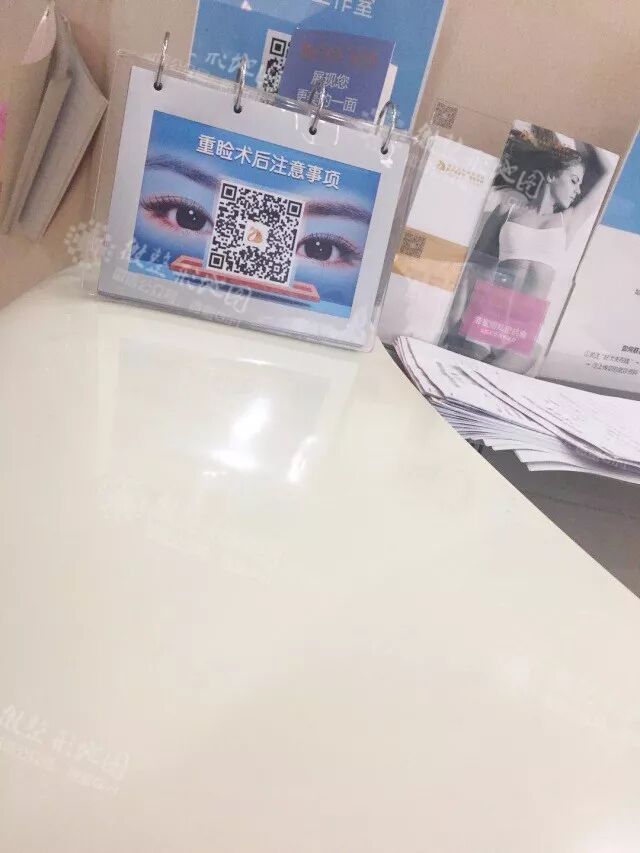 扫一扫前台桌子上的重睑术后注意事项二维码,直接出现相关文章。从这个小细节里可以看出他们家很注重术后服务,不错哦~