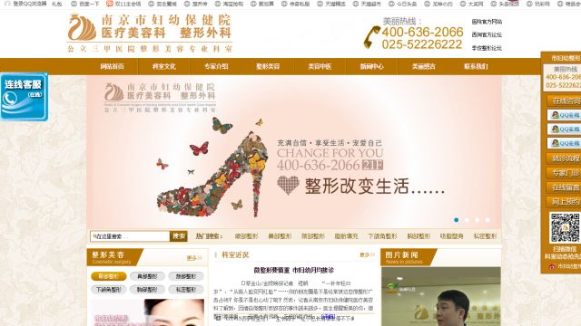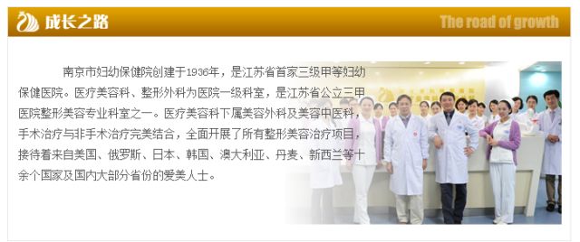 她就是南京妇幼保健医院整形美容科,人家虽说属于三甲医院,在经营方面还是很用心的,我们先从他们家官网上对他们家来个初了解~