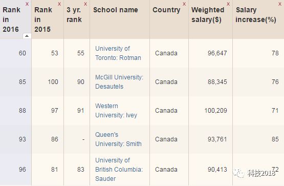 现在来看看FT.com给出的MBA各校排名及毕业后的工资。