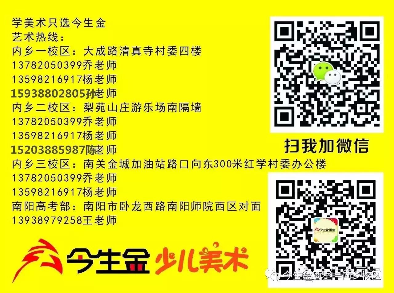 【今生金画室——内乡校区】是长年致力于少儿美术的专业教育机构,我们的教育,从开发孩子的兴趣开始,给孩子无限的创意和规范的指导,通过撕、剪、帖、粘、揉、搓、刻、刮、涂、抹、绘、画、培养孩子们动心、动脑、动手的创造和发现美的能力!2016年今生金画室新推出特色陶艺班,陶艺具有很强的可塑性,给孩子带来了很多新鲜感,所以很多孩子都自发的爱上了陶艺艺术。让孩子在兴趣的基础上,学好美术。让您的孩子在同龄人中成为佼佼者。