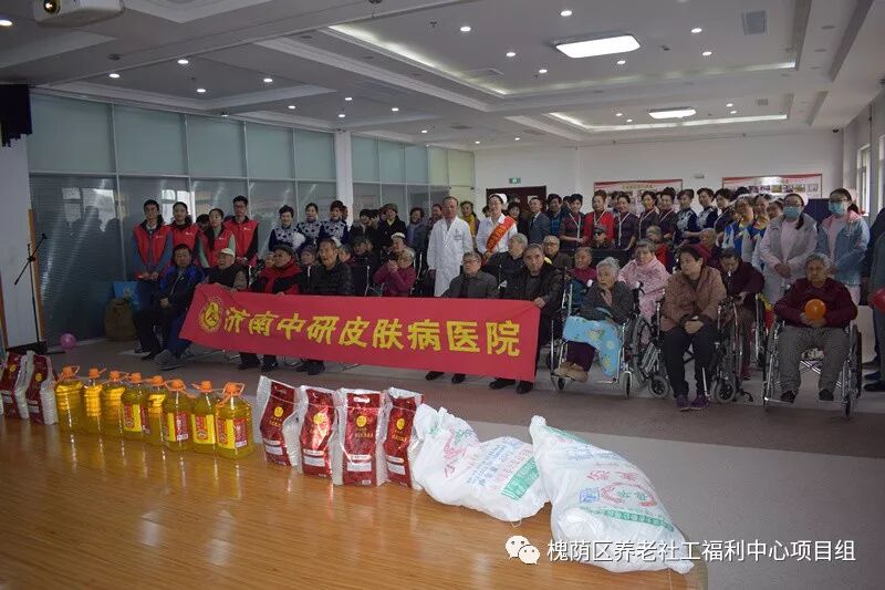 汇演开始前,济南中研皮肤病医院、杭州惠耳听力技术有限公司山东大区分别对福利中心老人带来温暖,捐献爱心,并进行义诊,福利中心吴院长对此衷心表示感谢。