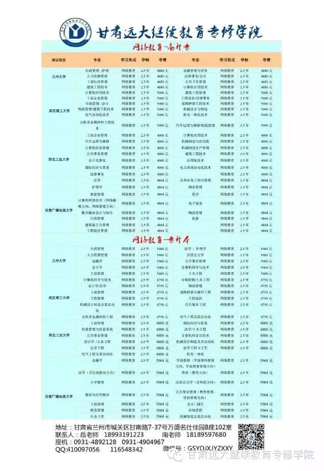 甘肃远大继续教育专修学院愿与各省(区)大、中专院校、企事业单位联合举办各种类型的成人教育及培训,有意者请与我们联系。