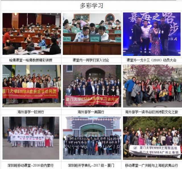 各大城市EMBA班级补课与联合上课制度,让学员体验不同商圈文化,打造全国性高端学员平台。