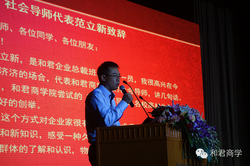 图:企业家导师代表 北京御中源投资管理公司董事长 和君企业总裁班第五期学员 范立新 讲话