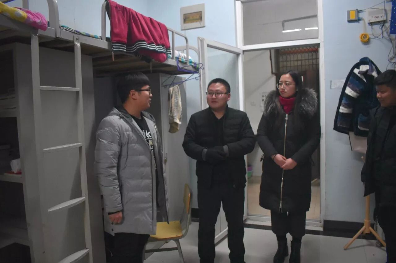1月7日,在期末考试即将来临之际。商学院成功开展宿舍走访活动。商学院党总支书记张意恭、团总支书记张帅及部分辅导员老师对于23号宿舍楼、28号宿舍楼、30号宿舍楼进行了走访活动。