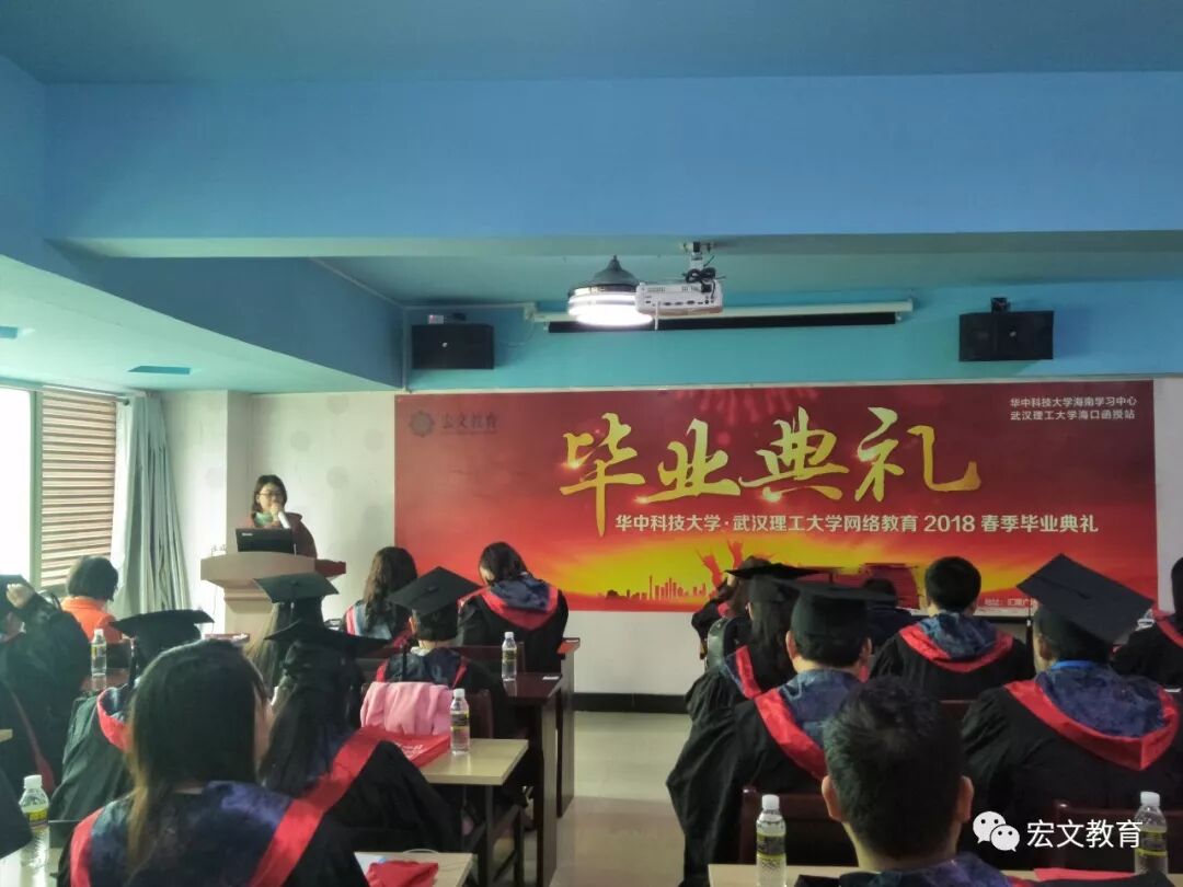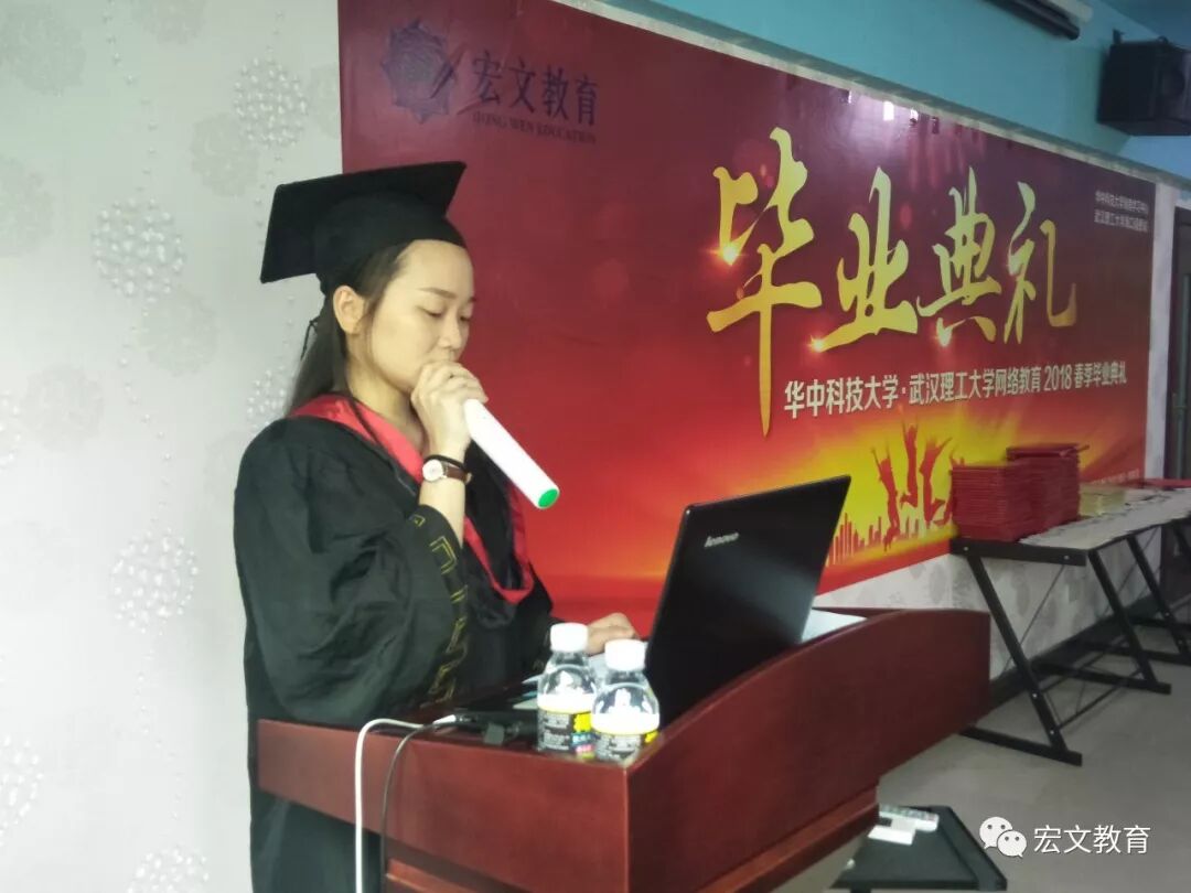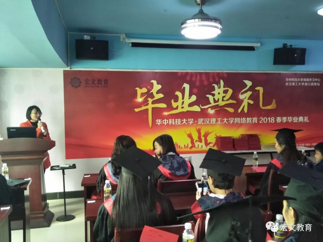 由毕业生代表王祯祯、符必婷同学分别做讲话,表示选择报读华中科技大学是自己最明智的选择。感谢海南中心的老师给予的专业的帮助,如今获得了毕业证和学士学位证书。学历的提升使他们在岗位和职场上有更大发展的可能性。抒发了毕业的喜悦心情,分享了自己两年半的求学收获,他向辛勤教导和培育自己的领导、老师表示感谢,对未来的人生道路提出更远大的追求和抱负,同时祝愿宏文教育的明天更加辉煌!