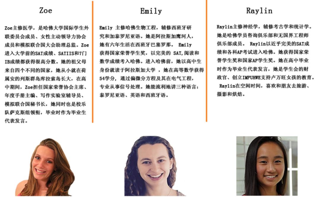 由大学顶尖学子亲自指导个人申请文书写作指导,和学生一起探讨如何在语言强化训练、学方法、领导力、人格养成教育、文化知识教育等方面得到有效的锻炼,从而拓宽学生的国际视野。丰富学生的人生阅历,为学生成为一位世界优秀的人才建立正确的世界观和方法。
