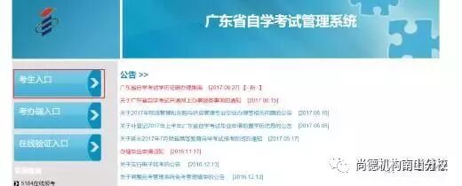 考生登录广东省自学考试管理系统(www.stegd.edu.cn/selfec)点击“考生入口”按钮(见图1)
