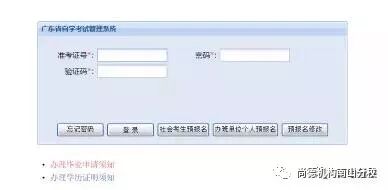 输入准考证号和考生密码以及系统验证码,点击登录按钮,登录管理系统。