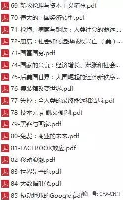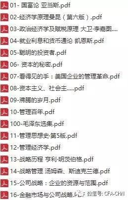 4,CFA教材。CFA教材中,有很多值得推崇的知识点。实际上,它本身都是经典教材来拼凑的。比如博迪的investment(Level2 Equity),舍夫林的beyond greed and fear('Level3 behavioral finance)。但是说实话,作为一个执照持有人,我特讨厌那种“建议看原版”的废话。绝对是装逼的一塌糊涂。很多国外的同学都从淘宝邮购schuwiser的notes,就是因为他把原版的很多知识点都加以精炼,真的不错。