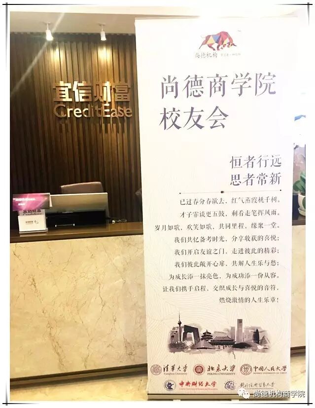 已过春分春欲去,红气蒸霞桃千树。才子霏谈更五鼓,剩看走笔挥风雨。3月26日,由尚德机构商学院主办、宜信财富承办的2017尚德春季校友会活动在北京国贸三期56层的宜信财富VIP中心顺利举办。
