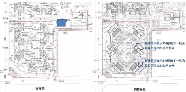 同时,三期还将地块一侧的垃圾用房位置,由地面调整至34#、35#楼地下室,垃圾用房面积未变。