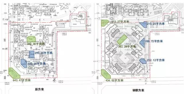 此次调整还将全民健身场地移动至地块东侧,分成三块、小区绿地等位置相应调整;