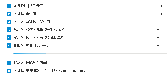 1月30日至31日,成都又有超过8个楼盘拿到住宅预售证,包括金牛区的电建地产洺悦府、温江区的和信·孔雀城三期A、B区、双流区的远大·林语城南地块二期、新都区的蜀尚雅筑2号楼、郫都区的杜鹃城千万间和金堂县的金悦湾、泰康博观二期一批次(21#、22#、23#)以及位于武侯新城的西派城、龙泉驿区的华润·云庭!
