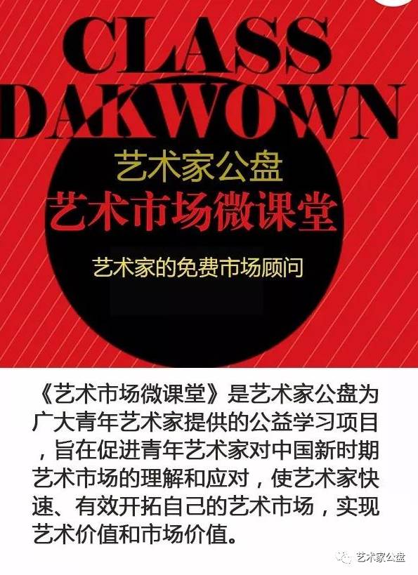 本次课程针对艺术家免费,希望朋友们邀请更多的艺术家来听,我们努力做大家的免费艺术市场顾问。进入课程请联系微信ZH910930,艺术家可转发微信报名课程。