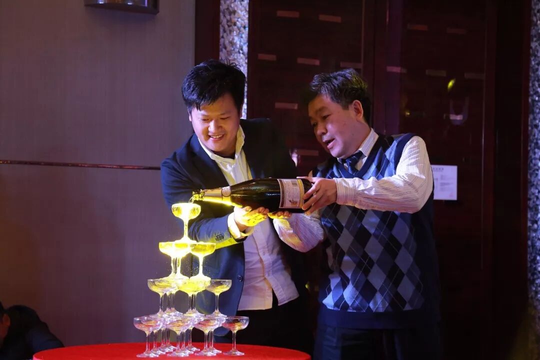 接下来,协会第三届常务理事班子上台一同注满了香槟塔,为大家送上新年的祝福!