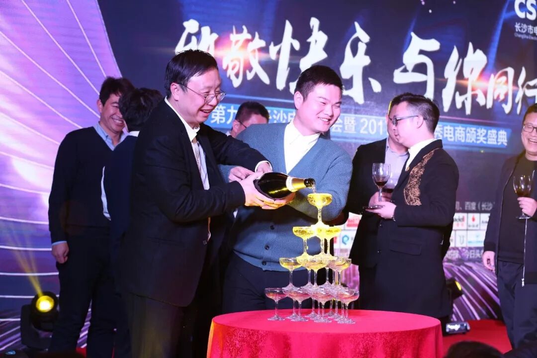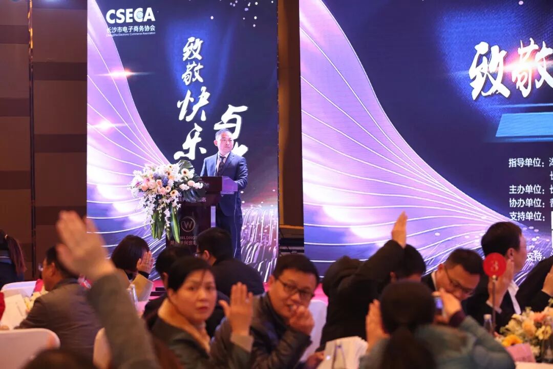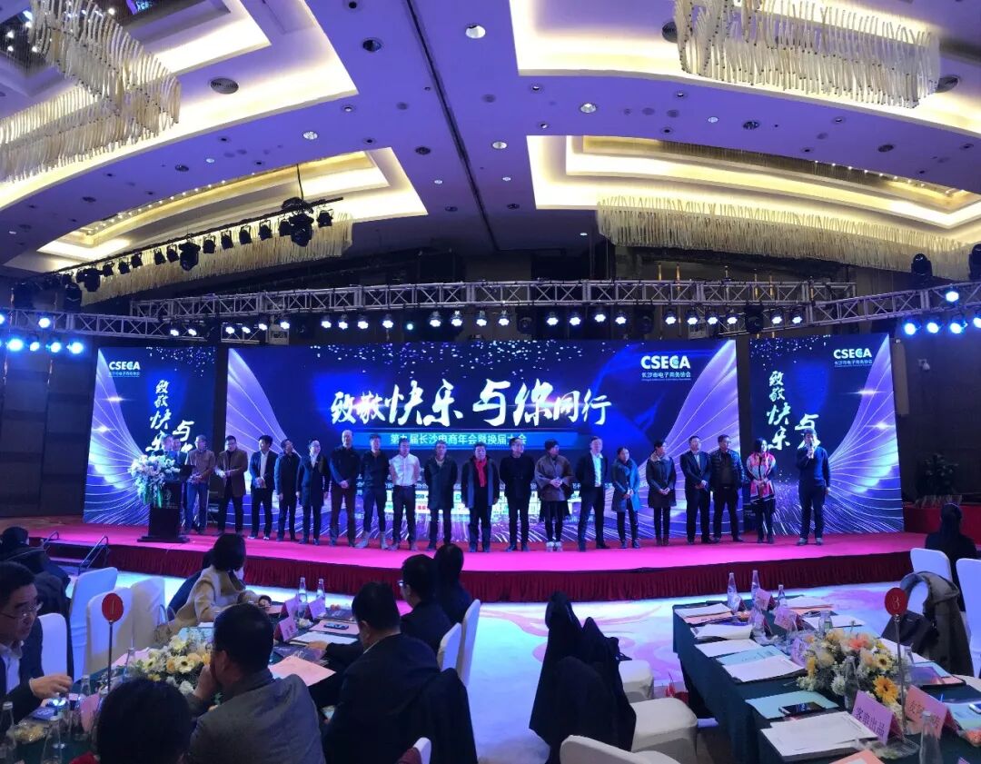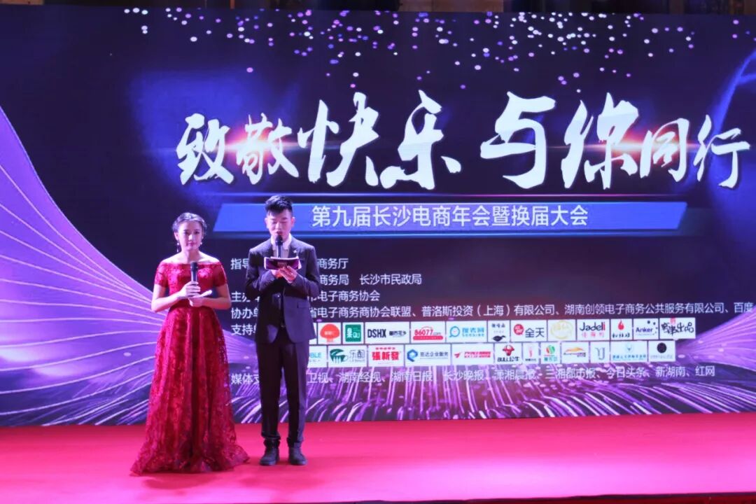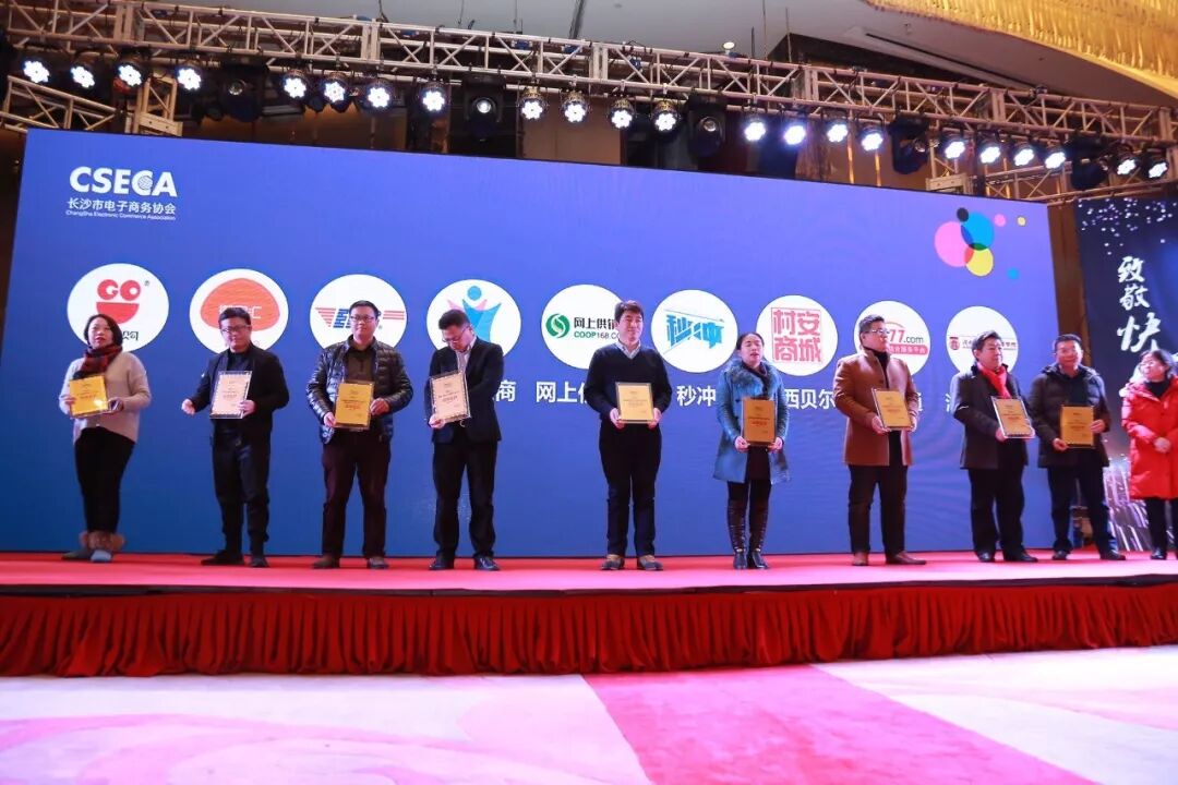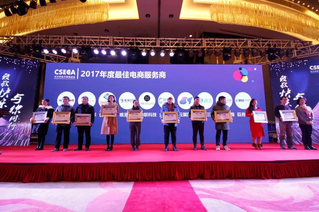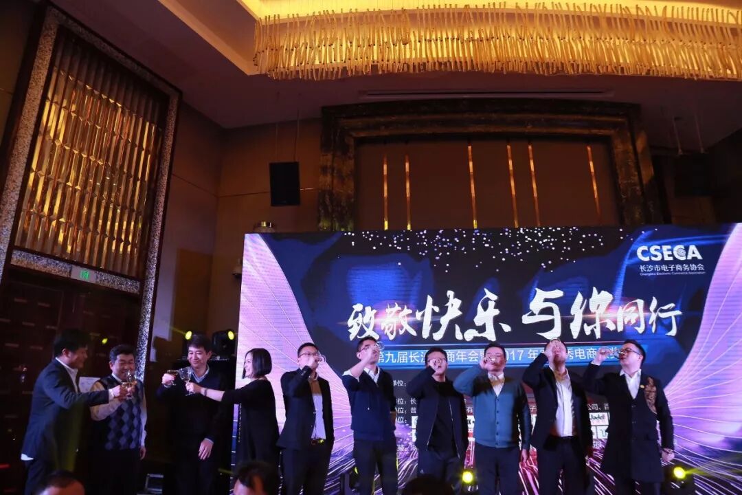 1月29日,由湖南省商务厅、长沙市商务局、,长沙市电子商务协会主办, 普洛斯投资(上海)有限公司、湖南创领电子商务公共服务有限公司、百度(长沙)创新中心协办的“致敬快乐 与你同行”第九届长沙电商年会暨2017年度优秀电商颁奖盛典在湖南佳兴世尊酒店举行,湖南省商务厅电子商务处处长胡松强、长沙市社会组织管理局局长李红辉、长沙市商务局副局长黄立斌、长沙高新区副主任陈大庆等相关领导出席会议,各兄弟协会、湖南省高等教育学会电子商务教育专业委员会、全省两百多位电商企业家参加这一行业盛会,座无虚席,大家共同展望2018湖南电商新前景,迎接湖南电商发展的春天!